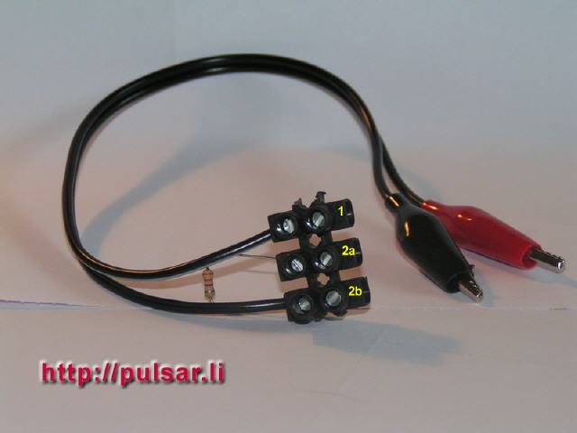 Connexion avec une résistance 3,3kOhm, câble crocodile et une fixation pour les électrodes. Sans électrodes.