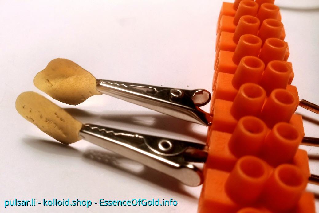 un terminau de lustre pour la fixation des lingots avec des pinces crocodiles.