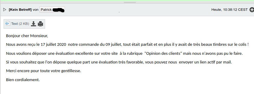 En conclusion, je suis satisfait de vos services maglré le petit souci, [j'avais envoyé de l'or au lieu d'argent colloïdal] et tenais à vous remercier pour la qualité de vos produits, qui me paraissent correspondre à leur description.