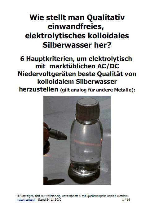 Wie stellt man qualitativ einwandfreies, elektrolytisches kolloidales Silberwasser her?