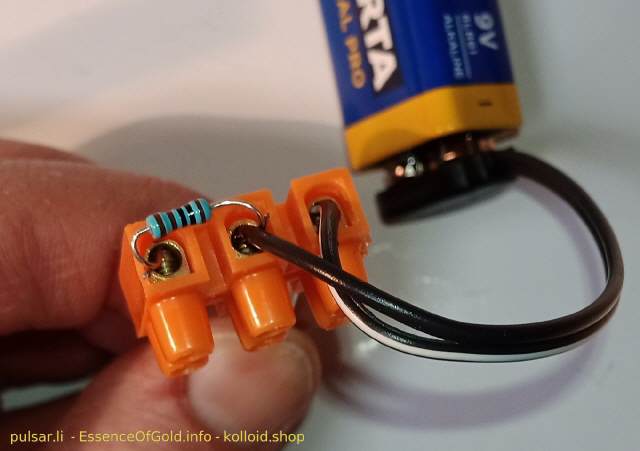 Dank dem miteingebauten 1KOhm Widerstand liefert das Set einen feinen Strom von 9 mAmp.