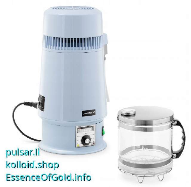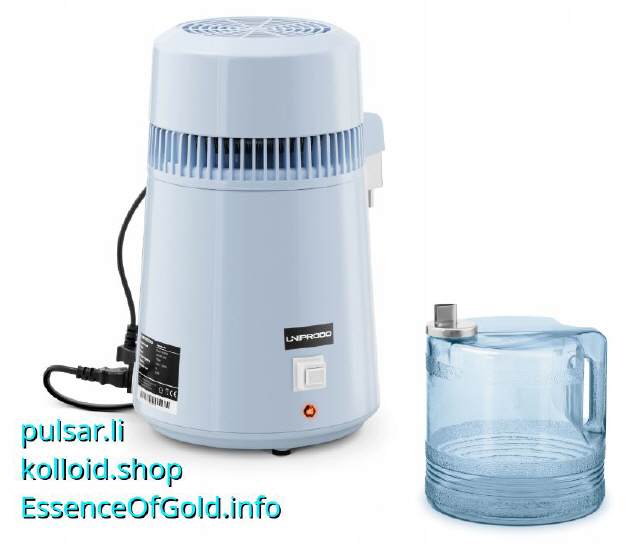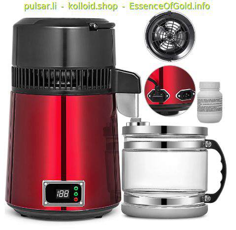 Tischdestillator zum destillieren von Wasser. Damit können Sie ihr destilliertes Wasser für kolloidales Silber u.a. Kolloide ab sofort selber in beliebiger Menge herstellen. Zahlt sich langfristig aus. Damit kann auch Alkohol destilliert werden.