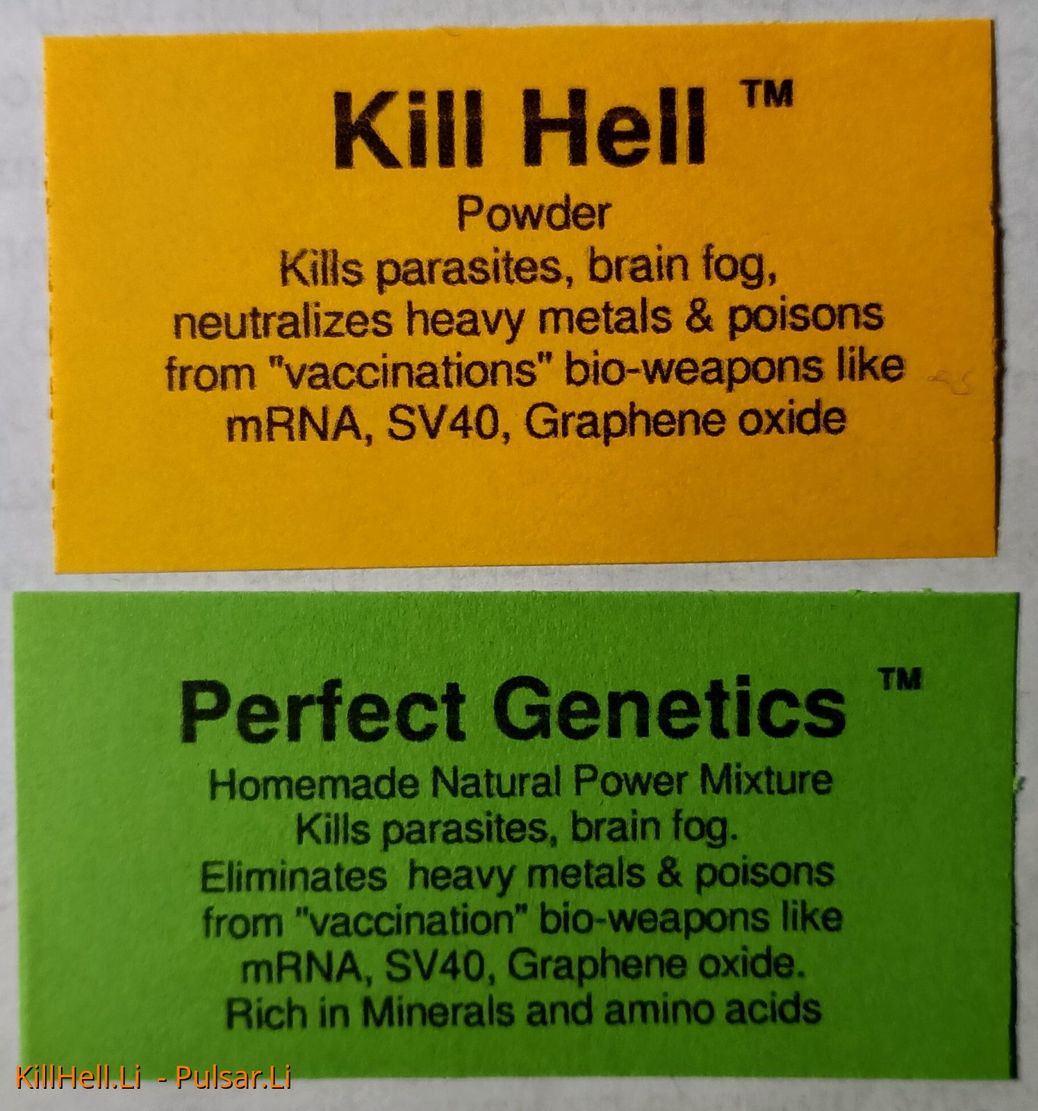 Perfekt Genetics alias Kill Hell ist ein sehr mächtiges Naturprodukt aus über 25 natürlichen Rohstoffen zur Engiftung, Darmregulierung, Druchblutung, Nebelfreies Gehirn, und Schutz der DNA.