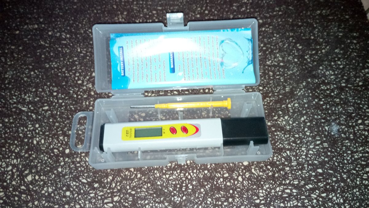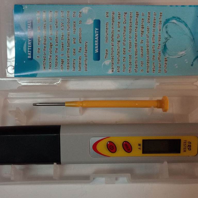 1 x ORP Messgerät in Plastikschachtel, 1 Batterie